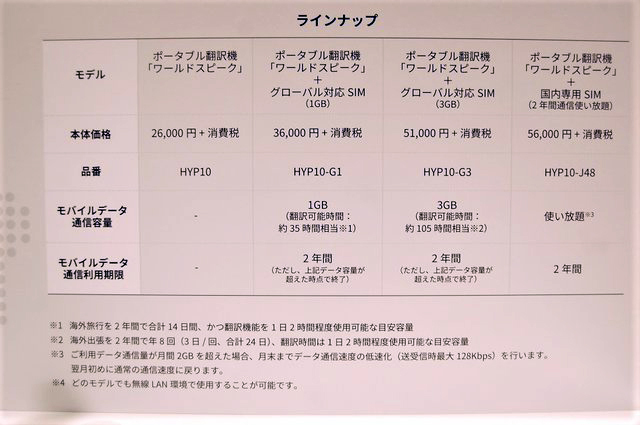 SIMカードの有無とタイプによる4モデルをラインナップする