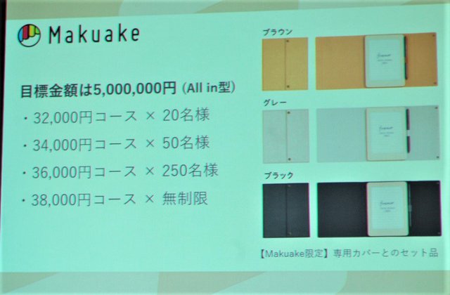 クラウドファンディングサービス「Makuake」を利用した今回のプロジェクトの目標金額は500万円。32,000円から38,000円の4つのコースが用意される