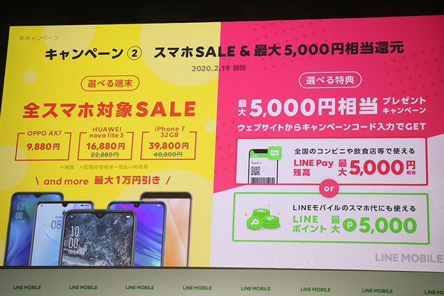 加入と同時にスマホ購入で最大10,000円割引、スマホを買わないユーザーには最大5,000円相当のLINE Pay残高もしくはポイントを付与