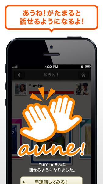 HOME > ニュース > モバイル/PCニュース 好みの合う相手と気軽に交流できる CCC、好きな本や音楽でつながれるマッチングアプリ「aune!」 ファイル・ウェブ編集部 2013年07月22日 前の写真へ 「あうね!」がたまるとチャットや通話ができる 前の写真へ この写真の記事へ 関連リンク aune! 公式サイト