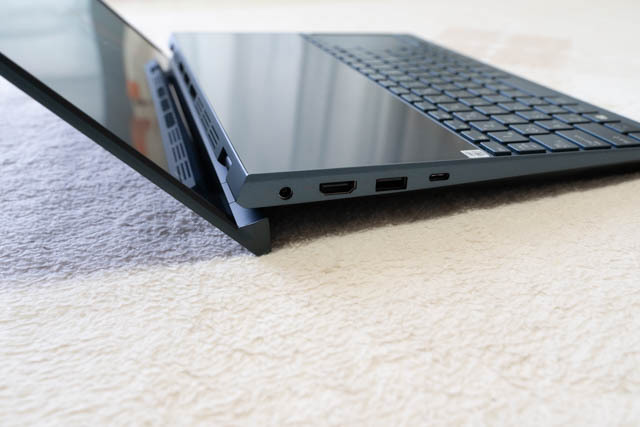 若干浮き上がる「エルゴリフトヒンジ」構造で、キーボードにも自動的に角度がつく