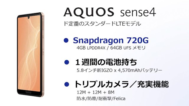 HOME > ニュース > モバイル/PCニュース 4,570mAhバッテリーを搭載 シャープ、電池が1週間持つスマホ「AQUOS sense4」。大画面モデル「sense4 plus」も 編集部:平山洸太 2020年09月11日 前の写真へ 次の写真へ スペックの概要 前の写真へ 次の写真へ この写真の記事へ 関連リンク シャープ