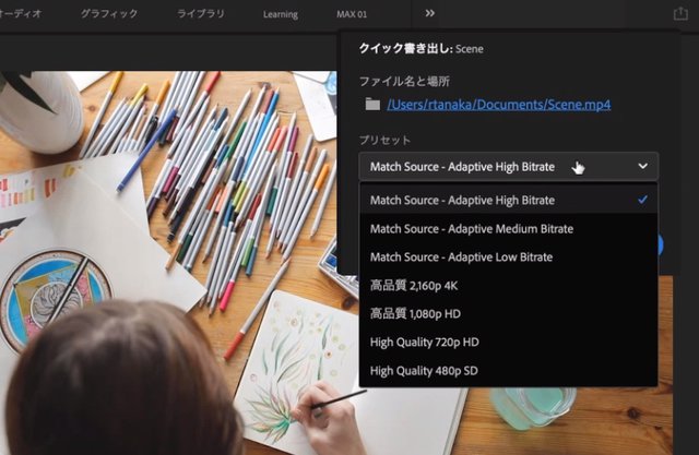ヘッダバーからワンタッチで書き出しができる