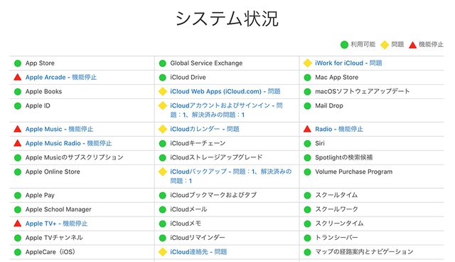 HOME > ニュース > モバイル/PCニュース iCloudへのサインインができない例も アップルのiCloudに障害発生、Apple MusicやApple TV+ も機能停止中 PHILE WEB編集部 2020年09月30日 9時55分時点でのシステム状況 この写真の記事へ 関連リンク アップルのシステム状況 アップル