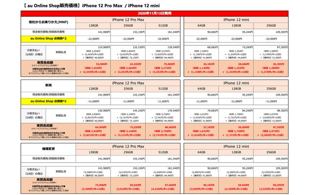 HOME > ニュース > モバイル/PCニュース 機種変も本体価格割引あり KDDIが「iPhone 12 Pro Max」「iPhone 12 mini」の価格発表。miniはMNPで実質26,185円から 編集部:川田菜月 2020年11月05日 iPhone 12 miniはMNPで実質26,185円から この写真の記事へ 関連リンク 販売価格の詳細(PDF) au「iPhone」ページ au