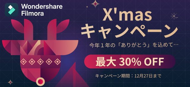 HOME > ニュース > モバイル/PCニュース Win/Mac両対応 映像編集ソフト「Filmora」が最大30%オフのクリスマスキャンペーン ファイルウェブ編集部・筑井真奈 2020年12月24日 12月27日までの限定キャンペーン この写真の記事へ 関連リンク Wondershare Filmora