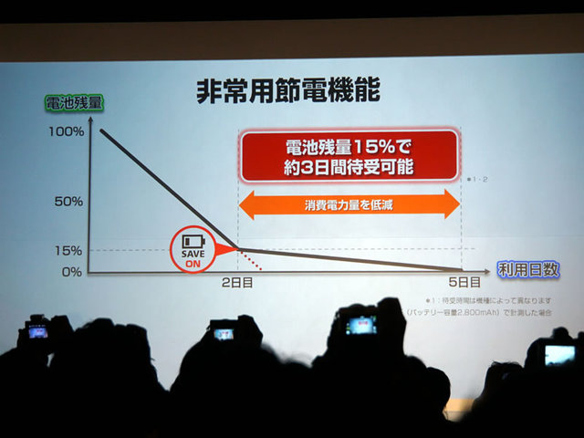 通話やウェブブラウザ、SNSなどコミュニケーションのために必要最低限な機能のみしか使えなくすることで省電力化する非常用モードを新搭載したことなども紹介