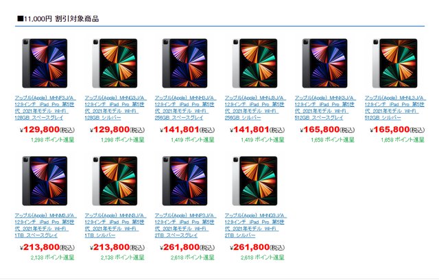 キャンペーン期間は、iPad Pro 第5世代 12.9インチモデルが11,000円引きにて販売される