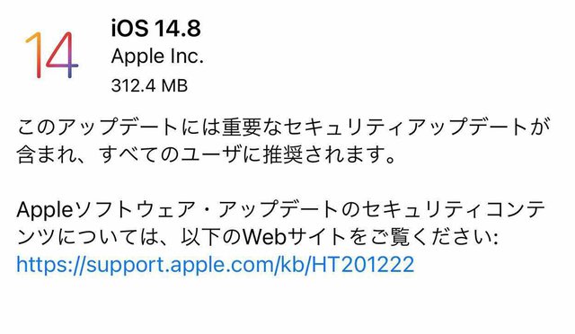 HOME > ニュース > モバイル/PCニュース 重要なセキュリティアップデートを含む 「iOS 14.8」「iPadOS 14.8」提供開始。すべてのユーザーに推奨 ファイルウェブ編集部 2021年09月14日 この写真の記事へ 関連リンク アップル