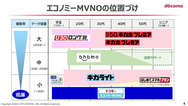 ドコモ、MVNOと連携した新たな低価格プラン。550円で0.5GB/無料通話10分付きなど