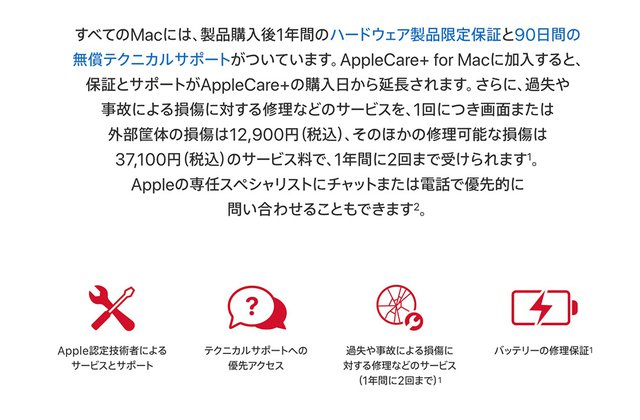 HOME > ニュース > モバイル/PCニュース 3/27まで ヨドバシとビック、MacBook購入でAppleCare+が最大6,000円引き PHILE WEB編集部 2022年03月27日 AppleCare+の主な保証内容 この写真の記事へ 関連リンク AppleCare+ ヨドバシ.com ビックカメラ.com