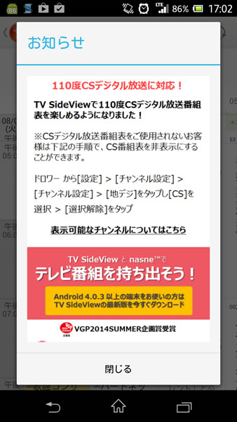 HOME > ニュース > モバイル/PCニュース バージョン 2.6.2の提供を開始 ソニーの「TV SideView」がアップデートで110度CS表示に対応 ファイル・ウェブ編集部 2014年08月05日 この写真の記事へ 関連リンク TV SideView(Google Play) TV SideView(iTunes)