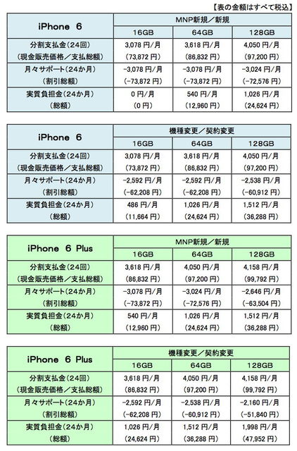 HOME > ニュース > モバイル/PCニュース 顧客獲得合戦が過熱 ドコモのiPhone 6/6 Plus価格決定、SBM対抗値下げ&キャンペーン増量。auは下取り増額 ファイル・ウェブ編集部 2014年09月16日 前の写真へ ドコモのiPhone 6/iPhone 6 Plus販売価格 前の写真へ この写真の記事へ 関連リンク ドコモのiPhone 6/iPhone 6 Plus販売価格(PDF) ドコモのiPhone 6/iPhone 6 Plusキャンペーン(PDF) auのiPhone 6向け下取り強化に関するプレスリリース ソフトバンクのMNP対象「「のりかえ下取りプログラム」」プレスリリース ソフトバンクの機種代金変更に関するプレスリリース