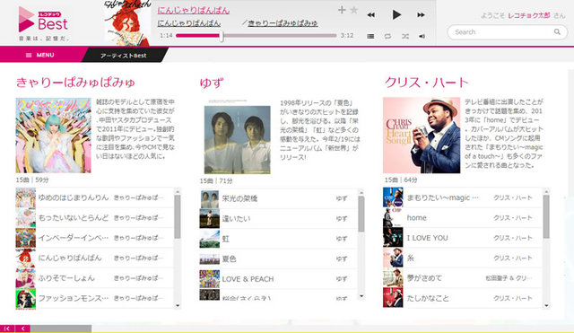 HOME > ニュース > モバイル/PCニュース ブラウザ利用のためソフトのインストールなどは不要 定額制聴き放題の音楽配信「レコチョク Best」がPCからの利用にも対応 ファイル・ウェブ編集部 2014年09月24日 PC版のUI この写真の記事へ 関連リンク レコチョク Best