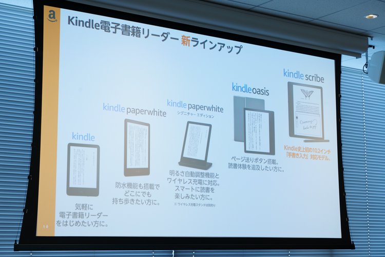 HOME > ニュース > モバイル/PCニュース 11/30発売 Kindle初の手書き対応モデル「Kindle Scribe」実機が国内披露。「読書に新たな可能性を提案」 編集部:成藤 正宣 2022年11月24日 前の写真へ 次の写真へ Kindleリーダーとしては最も大画面のモデル。同時に多機能さで新規ユーザーからの注目も期待する 前の写真へ 次の写真へ この写真の記事へ 関連リンク Kindle Scribe(スタンダードペン付)販売ページ Kindle Scribe(プレミアムペン付/64GB)販売ページ