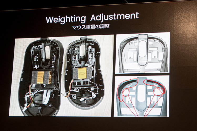 同ブランド従来品である有線マウスとの違和感を無くすべく、繰り返し重量調整が行われてきた