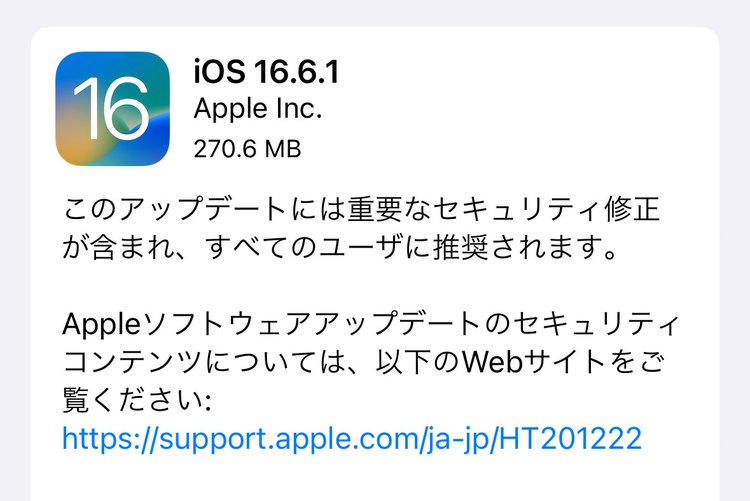 アップル、iOS 16.5.1(c)配信開始。緊急セキュリティ対応第3弾、すべてのユーザーに推奨