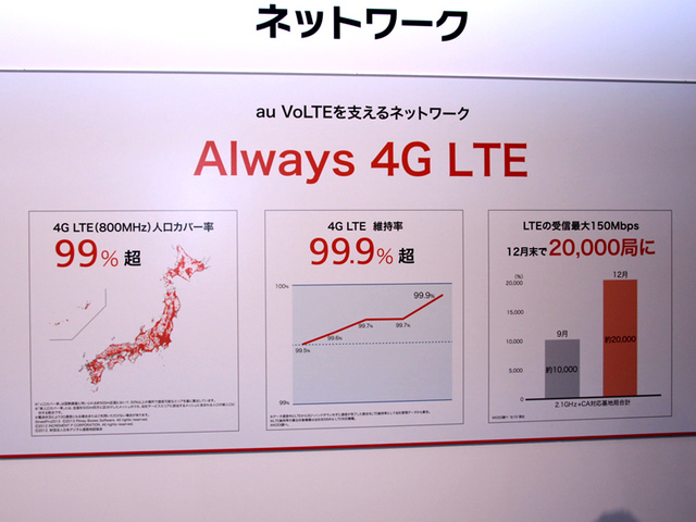 LTEの人口カバー率99%に加え、LTE維持率も99.9%超を達成