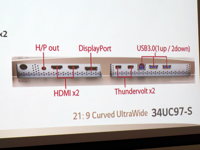 HOME > ニュース > モバイル/PCニュース 「31MU97-B」と「34UC97-S」 LG、4,096×2,160の4K対応機と日本初の曲面シネスコサイズ機のPCモニター2機種 ファイル・ウェブ編集部 2014年10月30日 前の写真へ 次の写真へ 端子配置 前の写真へ 次の写真へ この写真の記事へ 関連リンク 4Kモデル「31MU97-B」の詳細 曲面型「34UC97-S」の詳細