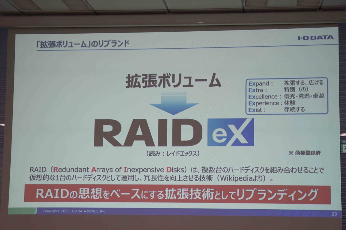 「拡張ボリューム」を「RAIDeX」としてリブランディング