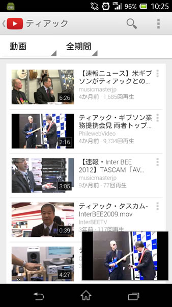 HOME > ニュース > モバイル/PCニュース 再生リストの「すべて再生」にも対応 YouTubeアプリが動画再生中の別動画検索などに対応 − Android/iOS版とも ファイル・ウェブ編集部 2013年08月21日 動画再生画面を下方向にフリックすると検索画面が表れ、再生画面は右下に小窓で表示される この写真の記事へ 関連リンク Google PlayのYouTubeアプリページ iTunes AppStoreのYouTubeアプリページ