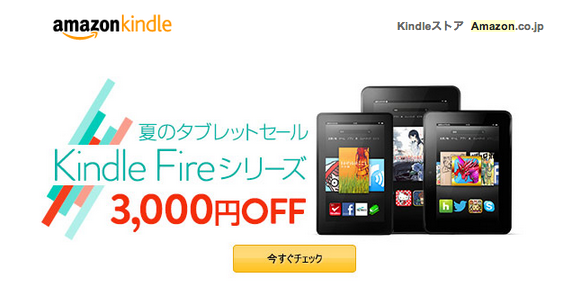 HOME > ニュース > モバイル/PCニュース 9月1日までのキャンペーンを実施 Amazon、Kindle Fire全機種を3000円値下げする期間限定キャンペーン ファイル・ウェブ編集部 2013年08月23日 この写真の記事へ 関連リンク amazon.co.jp