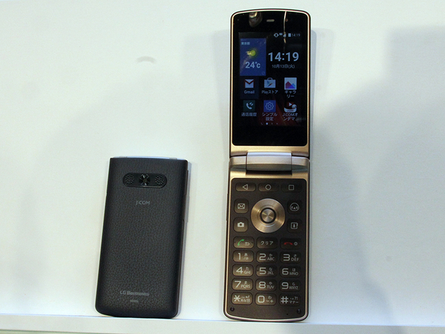セット販売される端末「LG Wine Smart」。フィーチャーフォンのような折りたたみ型だがAndroidスマートフォンで、液晶画面はタッチ操作にも対応する