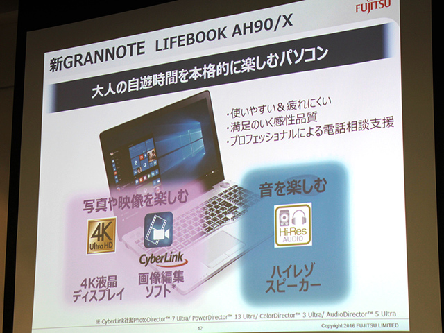 富士通、同社初4K&“ハイレゾスピーカー”搭載のノートPC「AH90/X」