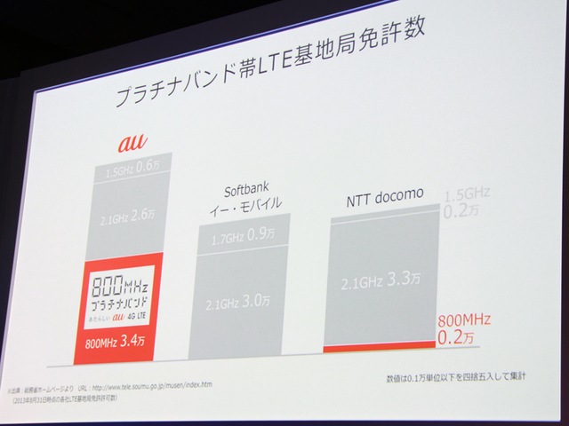 KDDIの800MHz帯LTEの基地局免許数は3.4万で他社を大きくしのぐ