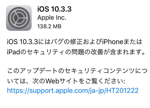 iOS 10.3.1公開。バグ修正やセキュリティの改善など