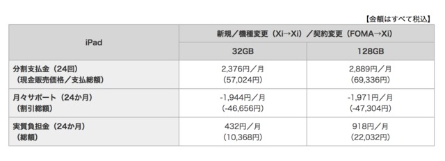 HOME > ニュース > モバイル/PCニュース 128GBで月額918円 ドコモ、新iPadの価格を発表。実質支払金は月額432円から 編集部:押野 由宇 2018年03月28日 次の写真へ ドコモオンラインショップでの価格 次の写真へ この写真の記事へ 関連リンク リリースの詳細 NTTドコモ