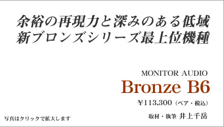 シリーズのトップモデルだけあって、他の機種よりも余裕の大きな包容力を備えている。音の出方が楽で、解像度の高い音調である。特に低域の余力に富み、高域へかけても伸びやかでクリアな質感だ。
