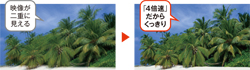 | 3D 従来の3D映像では映像が二重に見えることが多い。ソニーは「モーションフロープロ240Hz」でこの問題を解決。クロストークの少ない映像を実現した。 |