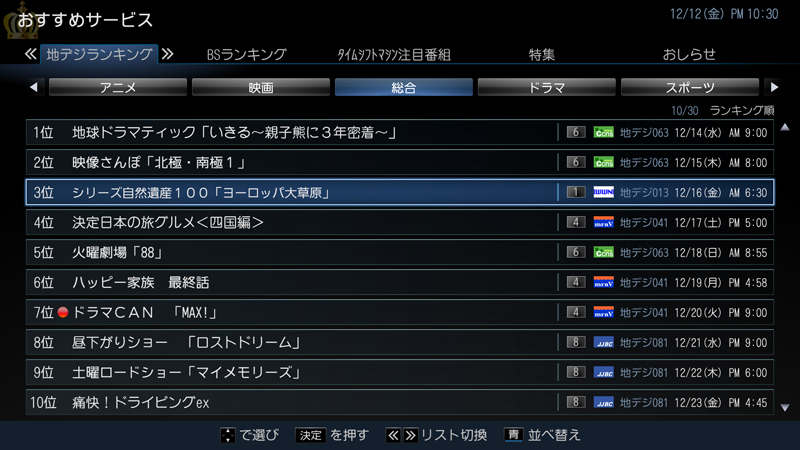 | ●おすすめサービス インターネット経由で様々な録画ランキング情報が入手可 |