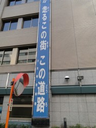 続いては縦位置でのパノラマ撮影にもトライ。場所を移動し、縦に長い垂れ幕を撮影してみた。下記はパノラマ未使用時の写真だ。