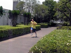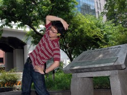 まずは軽めにラジオ体操から始めてみることにした記者。調べてみると、編集部から徒歩圏内に「ラジオ体操発祥の地」だという公園があることが分かったため、せっかくなのでそちらで体操をしてみた。