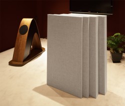 低周波除去の研究で最先端の技術力を持つ昭和電線デバイステクノロジー社がオーディオファンに向けて吸音パネルを発売している。膜振動による吸音原理を使うことで薄型でも低周波吸音が確実にできるという画期的な吸音材で、定在波対策にも有効な製品であるといえる。