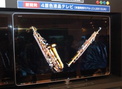 まず、米国ですでに発売されている、2D専用の4原色液晶テレビ「LC-LE810UN」の画質を見てみよう。やはりと言うべきか、その色鮮やかさは大きな特徴だ。展示用に用意された、広色域の再現性を重視したデモソースのみの視聴となるが、特に一目見て違いが分かるのがRGB+Yで追加されたイエローの美しさで、比較展示が行われていた「LC-LE700UN」にはない深みある色が出ており、特にデモソースではサックスの渋く重厚なゴールドが強く印象に残った。