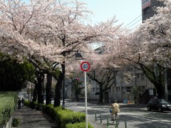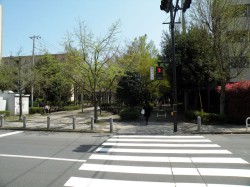 案内版、そしてnav-uの指示通りに交差点を直進する記者。ちょっとした坂が待ち受けていたりもしたが、取材当日はまだ残っていた桜を横目に旅路は順調に進む。その後、大きな団地の敷地に入り、車道は丁字路で左右どちらかにしか進めない道に突き当たった。だが、目の前には歩行者や自転車用の道が用意されており、ここで「自転車ナビ」機能の威力が発揮されることとなった。