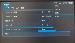 7インチの大きさと800×480の解像度を持つ画面には、普段はそれを生かした大きく滑らかなフォントで現在時刻が表示される。視認性抜群だ。アラームも細かに設定できる2系統を装備している。