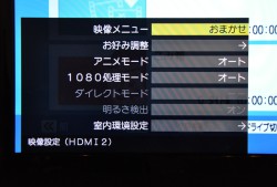 「映像モード」のコンセプトもZ1シリーズで新たに変更された。Z9000シリーズでは「おまかせ/あざやか/標準/映画/テレビプロ/映画プロ/ゲーム/PCファイン/メモリー」の項目が設けられていたが、Z1シリーズでは「おまかせ/あざやか/標準/テレビプロ/映画プロ/ゲーム/PC」と、項目数がシンプルになり、「各映像モードごと」にユーザーがカスタマイズした調整値を記録しておけるようになった。例えば「おまかせ」の映像を設定値から調整して保存しておき、「あざやか」「映画プロ」「ゲーム」とそれぞれに同様の設定値保存ができる。カスタマイズを行うと、モード表示が「おまかせ:メモリー」等になり、設定値は電源OFF後も保持される。調整値の解除は映像モードごとに「初期設定値に戻す」だけでOKだ。