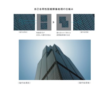 REGZAシリーズの特徴である超解像技術は“第4世代”にアップデートされ、最上位機種の“CELL REGZA”「55X1」が初めて採用した「自己合同性超解像技術」がZ1シリーズの各機種に採用されている。本技術は入力画像のエッジ部周囲にある「似た画像」を抽出し、その画素を画像の位相に合わせて重ね合わせることで新たな画像を生成し、より正確な映像に補正をかけるというものだ。なお、自己合同性超解像は1080p/iの映像処理信号に対しては適用されない。