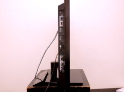 パネル解像度はフルHDで、地上・BS・110度CSデジタルチューナー、および地上アナログチューナーを各1基装備。HDMI入力は側面と背面にそれぞれ2端子ずつ、計4端子を搭載している。なお、背面にあるHDMIやアンテナなどの端子部分は、通常はカバーで隠されており、使用時にはこのカバーを取り外して各種ケーブルを接続することになる。