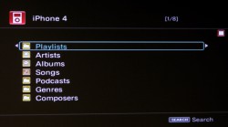 iPodデジタル接続も使いやすい。本機のオンスクリーン表示は日本語に対応しているので、日本語を含むiPod収録曲の表示も問題なし。SEARCH/INFOボタンの長押しで、操作をiPod側に渡すこともできる。この場合は普段iPodを使うときと同じように手元で操作すればOKだ。