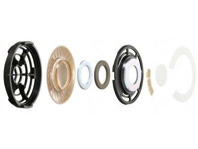 角田氏:内部損失が高い材質は余分な振動を吸収するわけですから、一般的に材質としては柔らかくなります。極論で例えるなら粘土のような物質です。しかし振動板はボイスコイルの振動を増幅するのが役目ですから、剛性が高い硬い材質でないと音が出ません。“硬いけど響かない”という矛盾した素材こそが、モニターヘッドホンとして理想的な振動板の材質という事になります。