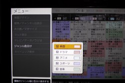 番組表から番組を探す時のコツは2つあります。一つは、番組はジャンルによって決まる色分けを使うことです。たとえば「今夜放送の映画の録画予約をしよう」という時には、映画の色分けを覚えておけば、すぐに目当ての番組を見つけられます。