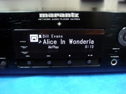 ファームウェアアップグレード後のNA7004を起動すると、「Hello」に続けて「marantz NA7004 UPGRADE」と表示される。これでLANの設定(といってもDHCPで自動的にIPアドレスを取得するのでEthernetケーブルをつなぐだけ)が完了していれば、AirPlay経由で音楽データを受信できる。