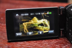 2D/3Dされた映像を視聴してみたが、自然な奥行き感が好印象だ。3D変換をしても画面がトリミングされず、もとの構図が保たれるのも嬉しい。3D表示の効果は「0/±1/±2」の5段階で調整できる。肝心の画質だが、高精細な3D変換処理を高速に、映像を破綻させることなく実現していることに驚かされた。本体の液晶モニターも画面が大きく見やすい。なお、裸眼3D表示はGS-TD1と同じ視差バリア方式を採用している。さらにタッチパネル操作にも対応しているので、ビデオカメラ初心者でも直感的に操作できると思う。パネルの外側もオーロラブラックが高品位D、フルフラットタイプのデザインが美しい。