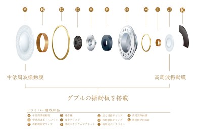 駆動用マグネットは共有するなどしてコンパクト化を図り、イヤホンサイズの中でマルチウェイ的な構成を、しかも自然な鳴りっぷりなどを得やすいダイナミック方式で実現したというのが、ドブルベの独創性であり強みだ。