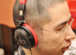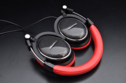 カーボン素材はこのヘッドホンの外観上においても大きなポイントになっている。カラーバリエーションにはレッドとブラックの2色があるが、特にレッドはイヤーパッドとヘッドパッドに配置したクッションの赤色に、ハウジング等のパーツに用いている黒色とカーボンの素材感の組み合わせが鮮烈なイメージを持たせている。